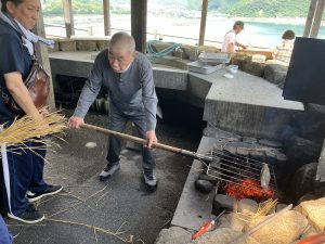 お昼前に中土佐町に到着して、さっそく人数分のカツオのたたき作り開始です!