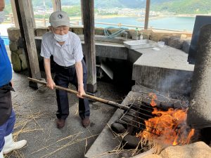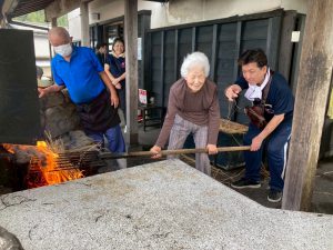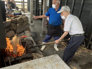 藁の火の勢いがすごかったです。たたきを焼いてくれているご利用者様も若干、お腰が引けてしまっている気がします💦