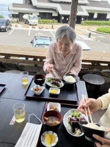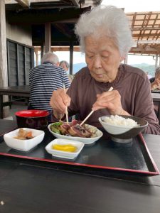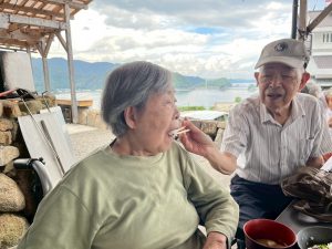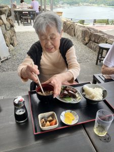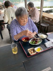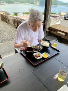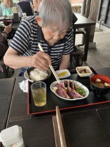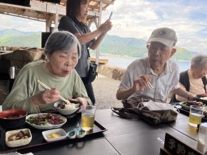 焼きたてのカツオのたたきのお味はとても良かったようです。海沿いということもあり、潮の香りを感じながら皆さん、完食されていました。