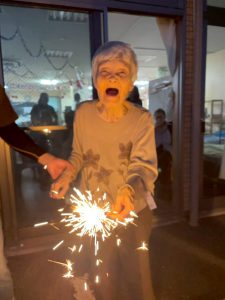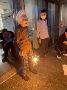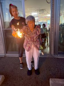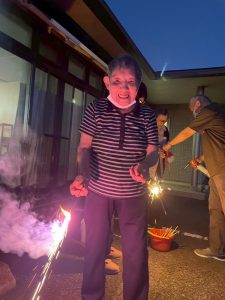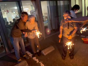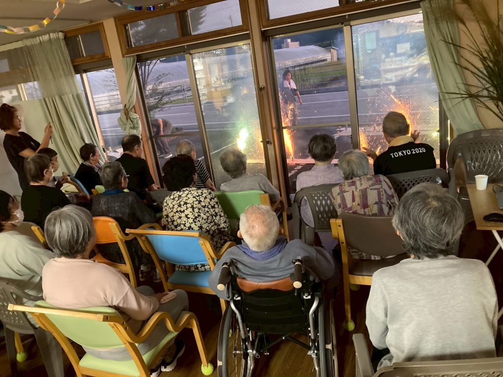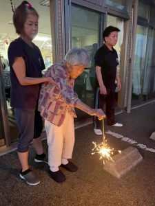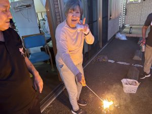 今日のレクの最後は花火です。まず噴出し花火をしました。