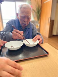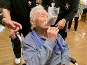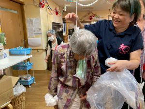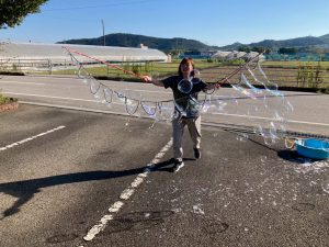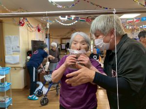 ご自身で取ったパンが当日のおやつとなりました。おやつの後には職員によるシャボン玉の演技披露がありました。