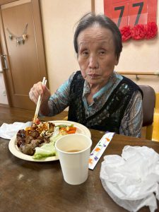焼きたてのハンバーグ、たこ焼きはとても美味しかったです。お代わりをされる利用者様も居られました。