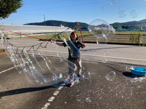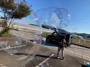 人が入れそうなほど大きなシャボン玉ができあがると「うわー!すごい!」と歓声と拍手が起こっていました。